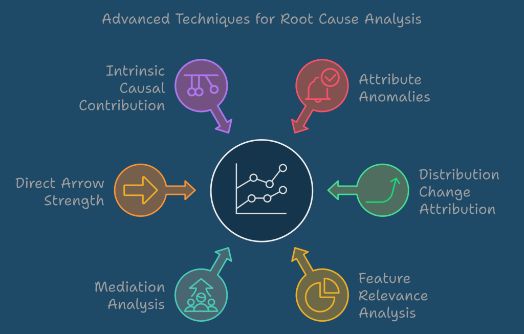 Root cause analysis is a critical component of Artificial Intelligence, allowing companies to understand the underlying factors driving their performance and outcomes. The ProfitOps platform incorporates several advanced techniques for root cause analysis, leveraging the power of the graphical causal model framework. This post outlines six key techniques supported by our platform: Attribute Anomalies, Distribution Change Attribution, Feature Relevance Analysis, Mediation Analysis, Direct Arrow Strength, and Intrinsic Causal Contribution.